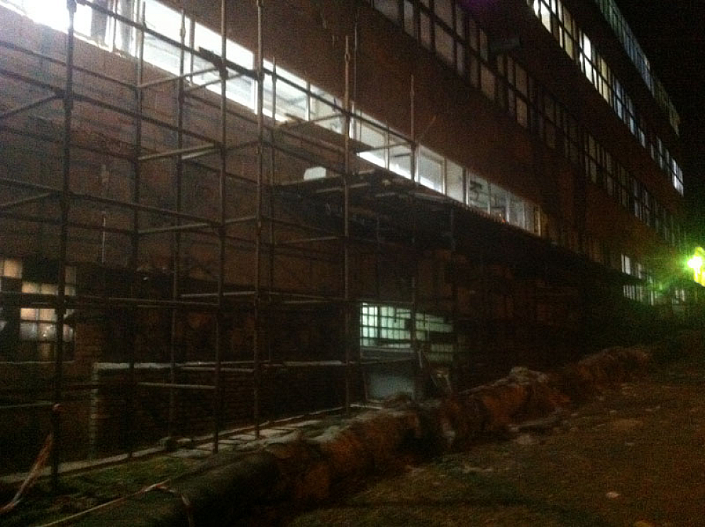 Час назад спускаюсь по Театральной, подхожу к перекрестку с Трудовой, как смотрю - две тени, со стороны краеведческого музея, перебегают перекресток и ныряют в темноту. В руках у хлопцев виднелись пальцы (трубы) строительных лесов.