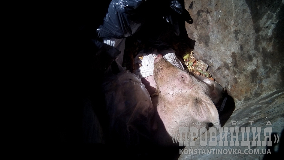 Возникает вопрос: что тут делает этот труп? Что это - диверсия по распространению "свинной чумы" в Константиновке или "привет" от жителей коммунисту-Дилину? Что-то мне подсказывает, что второе.