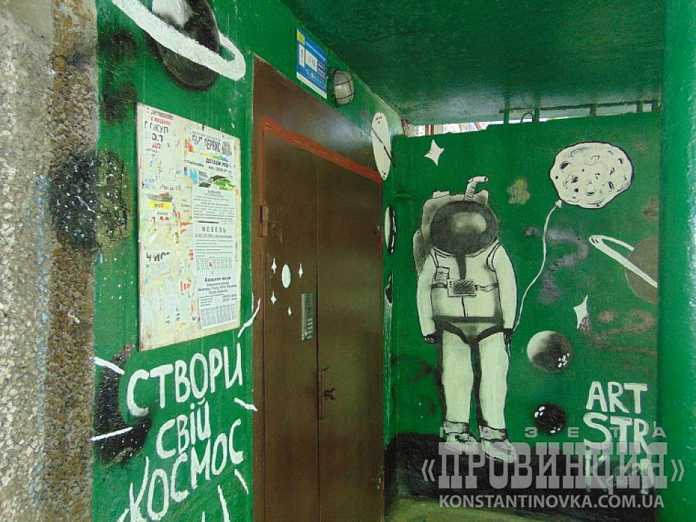 Жители дома №34 по ул.Громова сделали вход в один из подъездов космическим. Тем самым поддержав традицию наших дедов и отцов — насыщение этой тематикой городского пространства. Напомним, что Михаил Громов, чье имя носит эта улица, также герой летчик — покоритель неба.