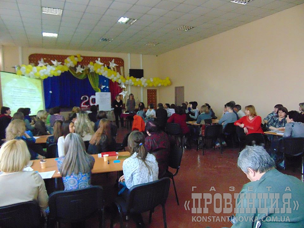У великій залі Костянтинівського ліцею ми зібрали педагогів зі шкіл та дитячих садочків, громадськість, представників учнівського самоврядування та батьківского активу. Це були всі бажаючі містяни тому що об'яву про захід надали всі ЗМІ міста та соціальні мережи.