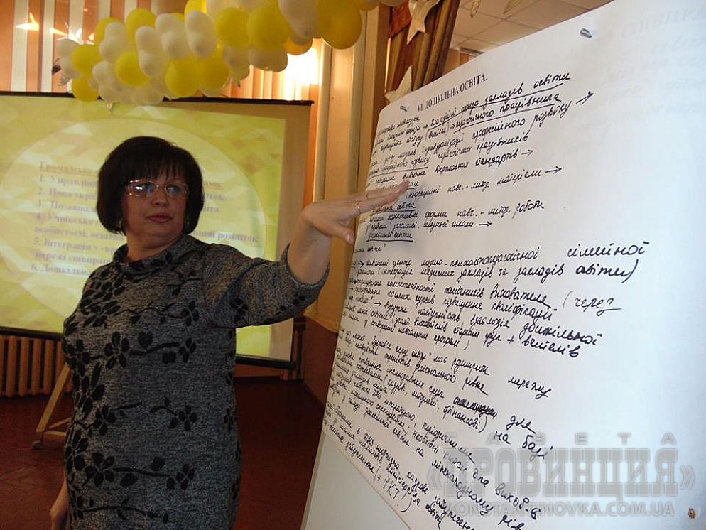 Начальник Управління освіти О.Барабаш: "Я вітаю всіх з закінченням нашого обговорення! За звичай, коли до Управління освіти приходили різні дерективи, щоб були розроблені плани чи програми, то користувалися тільки своїм досвідом. Але зрозуміле, що цого досвіду недостатньо. Тому ми захотіли почути голос громадськості, батьків, вчителів та школярів. Бо нова школа, яку зараз починають створювати в країні, повинна бути з новим освітнім середовищем, де повинні почути голоси всіх суб'єктів виховного процесу. Ми уважно подивимося всі ваши пропозиції та на їх базі сформируємо попозиції до Департаменту освіти області.
