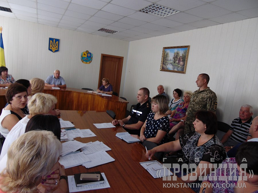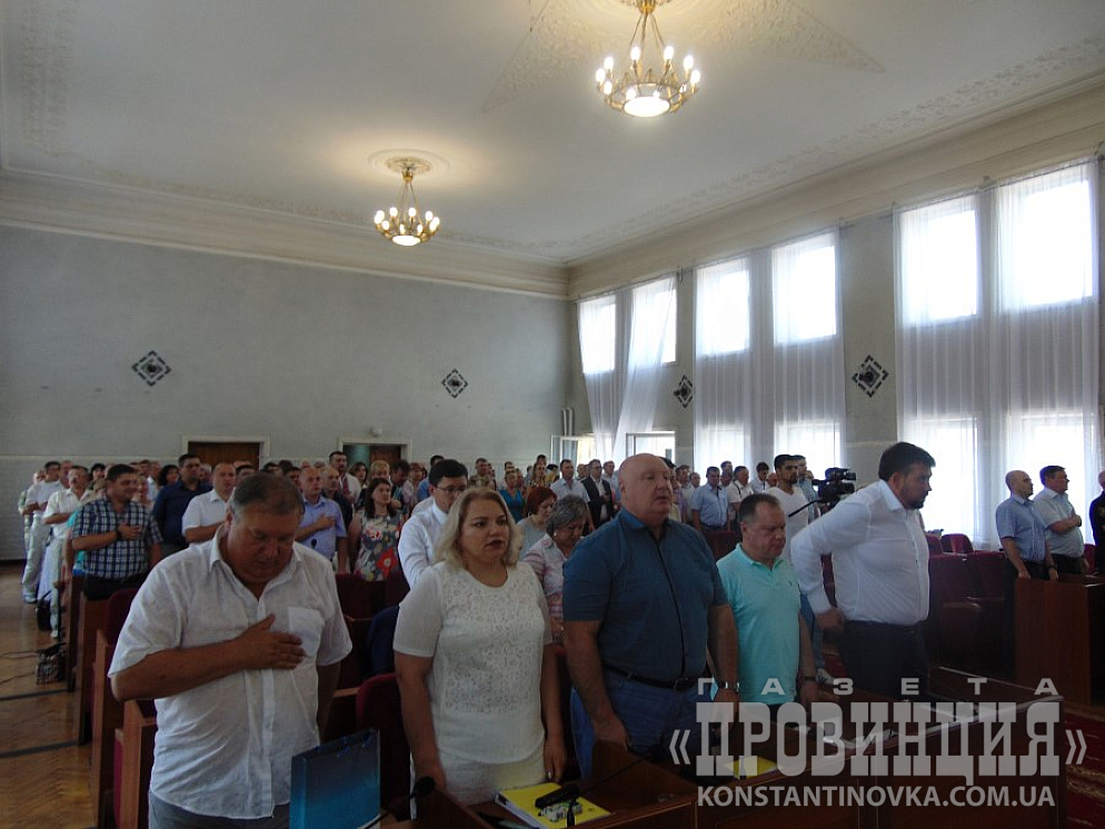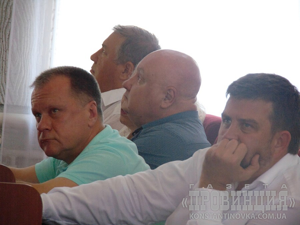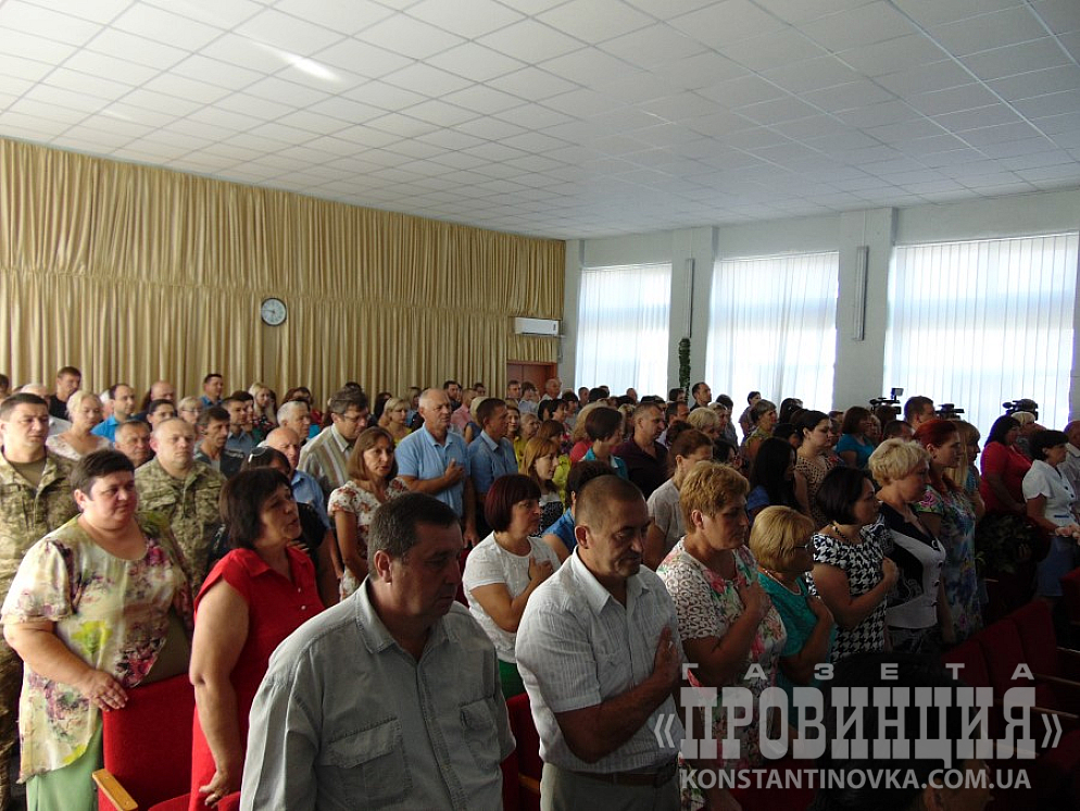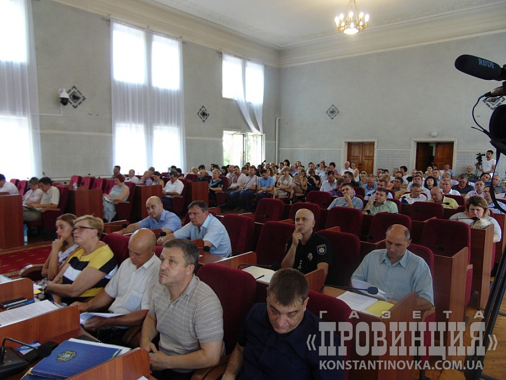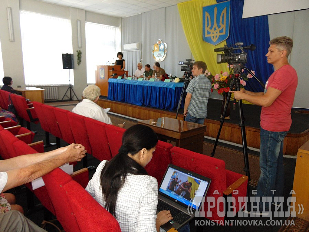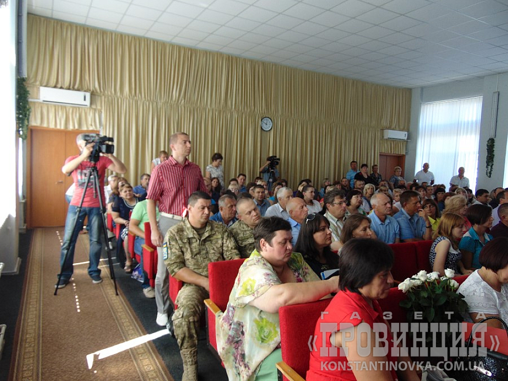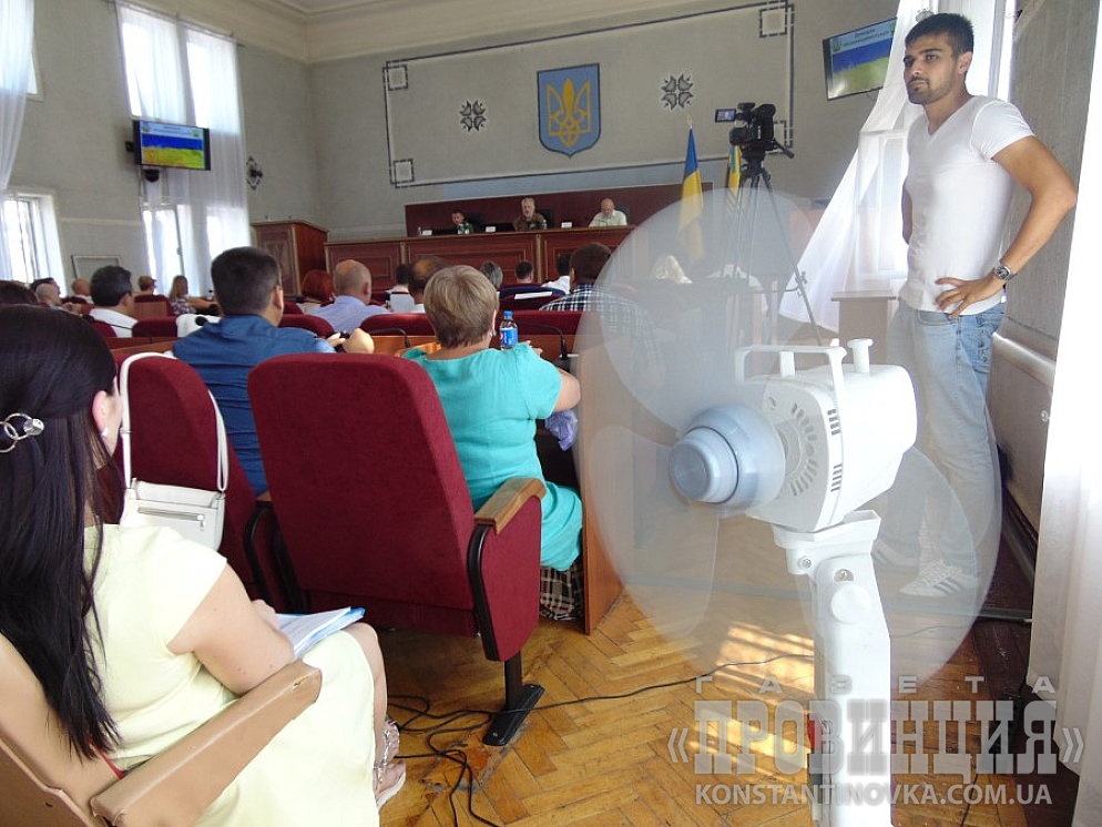 Коллегия началась в 11.00 в сессионном зале Константиновского горсовета. Духота была приличная, если бы не цветные буклеты, которые выдавали участникам, хорошо работающие, как вееры, да обилие питьевой воды - было бы трудно. Недаром внизу дежурила скорая. Правда, быстро появились вентиляторы. Открытые окна также неплохо выручали.