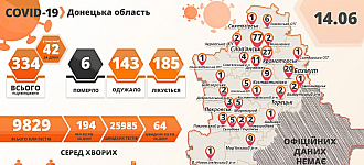 Антирекорд із захворюваності на COVID-19 зафіксовано на Донеччині протягом цієї доби, 14 червня: 42 нові випадки.
