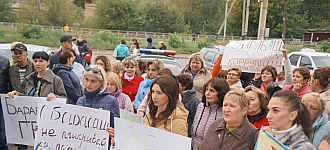 В четверг, 4 октября, на ступенях горсовета прошел митинг членов профсоюза образования города и родителей червонянского детского сада № 23. Собравшиеся около 40 человек требовали отставки начальника городского управления образования Ольги Барабаш.