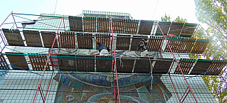 Сегодня в Константиновке (похоже,специально под выходные, чтобы никто не заметил) на самой красивой мозаике мозаичного комплекса, посвященного покорителям вселенной, что на торце дома №14 по бульвару Космонавтов, рабочие возвели строительные леса. Это жители 5-го этажа начали работу по установке термоизоляции своей…