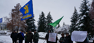 Сегодня в 12.00 часов, выходя на обед, сотрудники Константиновской райадминистрации и райсовета были встречены пикетом с разноцветными прапорами.