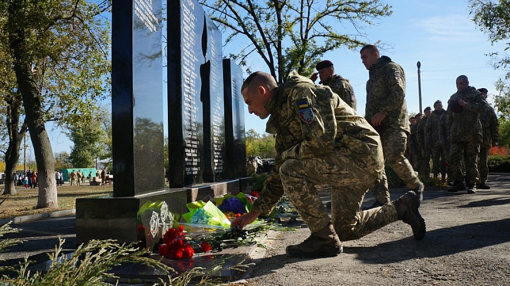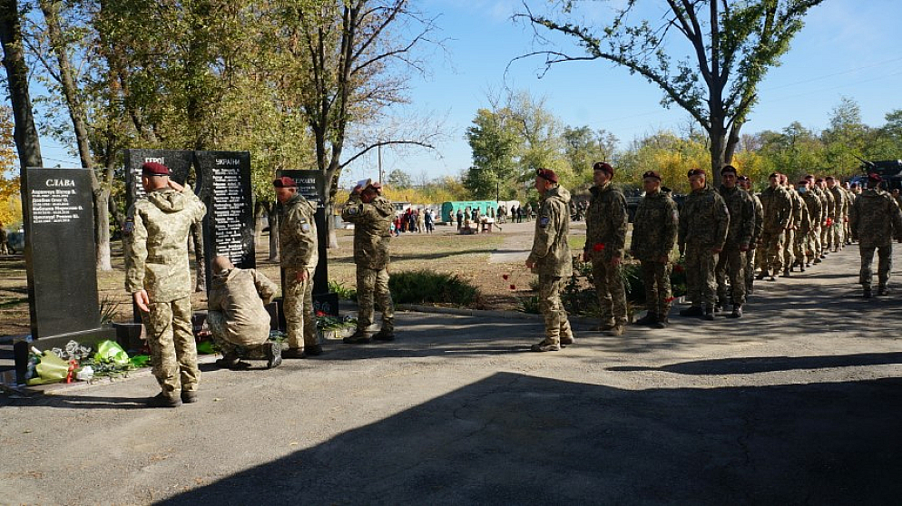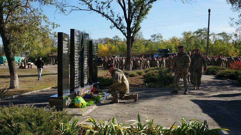Основні заходи разом з приїздом до частини комбригу та нагородженням вояків, що відзначилися, був молебень, та покладанням квітів до меморіалу Кіборгам — захисникам ДАПу. Покласти до меморіалу свій вінок від громади та вшанувати пам'ять загиблих приїхали голова громади Олег Азаров та секретар міськради Денис Коржиков.